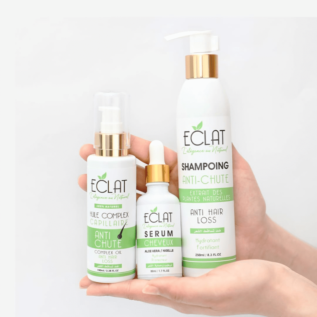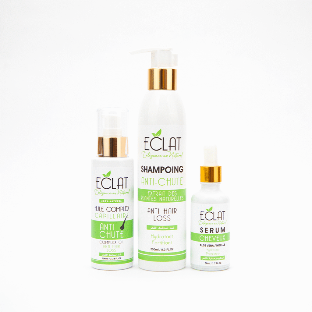 Ce pack associe l’Huile Capillaire Anti-Chute, le Shampoing, le Masque Hydratant et le Sérum Protecteur pour renforcer vos cheveux, réduire la chute et retrouver vitalité et brillance au quotidien.